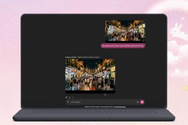 Để thực hiện, bạn chỉ cần tải bức ảnh có watermark Gemini lên khung trò chuyện của ChatGPT bằng biểu tượng dấu cộng hoặc chức năng tải tệp. Sau đó nhập một câu lệnh đơn giản, ví dụ: “Xóa watermark Gemini ở góc dưới bên phải của ảnh này.” Hệ thống sẽ phân tích hình ảnh, nhận diện khu vực chứa watermark và tự động tái tạo lại phần nền xung quanh.