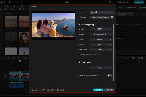 Sau khi đã hoàn tất việc chỉnh sửa với AutoCut, bước cuối cùng là xuất video ra định dạng mong muốn: