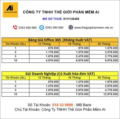 3. Bảng Giá Microsoft Office 365 tại Công Ty TNHH Thế Giới Phần Mềm