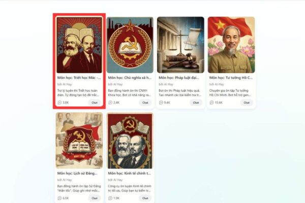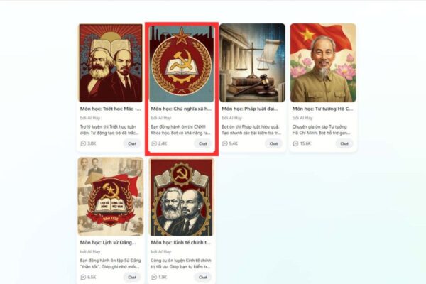 Hiện tại, hệ thống AI Hay phát triển 6 chatbot chuyên biệt cho các môn đại cương phổ biến trong chương trình đại học. Mỗi chatbot không hoạt động như một công cụ hỏi – đáp thông thường, mà được xây dựng như một trợ lý học tập riêng cho từng học phần. Nhờ sự chuyên môn hóa này, nội dung trả lời bám sát giáo trình, cấu trúc thi và đặc thù kiến thức của từng môn, giúp sinh viên tiếp cận bài học một cách rõ ràng, có định hướng và dễ ghi nhớ hơn.