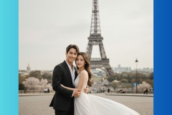 - Mô tả phong cách mong muốn thật cụ thể: Đừng chỉ ghi chung chung như “ảnh đẹp” hay “lãng mạn”. Hãy nêu rõ bối cảnh (ngoài trời, studio, quán cà phê), trang phục (váy trắng, vest đen, đồ casual), ánh sáng (ánh nắng hoàng hôn, ánh sáng studio mềm) và cảm xúc (cười nhẹ, nhìn nhau trìu mến). Càng chi tiết, AI càng dựng ảnh sát với ý tưởng của bạn.