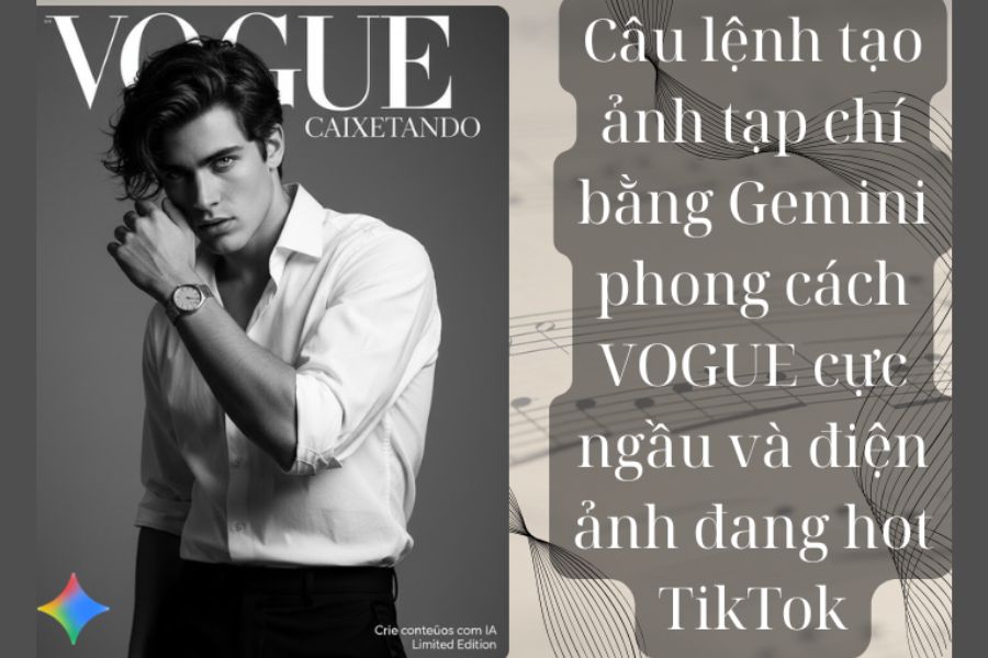 Không cần studio đắt tiền, không cần nhiếp ảnh gia hay phần mềm chỉnh sửa phức tạp, giờ đây, chỉ với Gemini AI, bạn có thể biến mọi bức ảnh bình thường thành ảnh bìa tạp chí VOGUE đậm chất thời trang. Trào lưu này không chỉ là cách thể hiện cá tính mà còn là “chiếc vé” giúp bạn tỏa sáng trên mạng xã hội, khiến người khác phải trầm trồ vì độ sáng tạo và gu thẩm mỹ của bạn. Nếu bạn muốn bắt kịp xu hướng và tạo nên những bức ảnh độc quyền mang phong cách riêng, hãy thử ngay hướng dẫn tạo ảnh tạp chí bằng Gemini từ Thế Giới Phần Mềm AI. Chỉ vài nốt nhạc, bạn sẽ có ngay “tác phẩm triệu view” để đăng TikTok, Facebook hay Instagram.