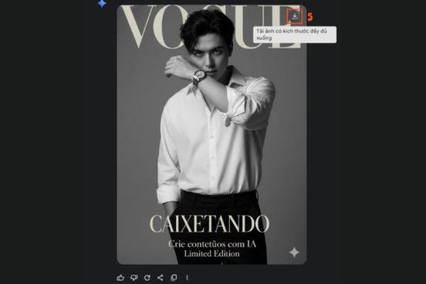 Khi kết quả hiển thị, hãy xem kỹ từng chi tiết, chọn tấm ảnh có bố cục hài hòa và thần thái chuẩn VOGUE nhất, rồi nhấn nút tải về. Thế là bạn đã hoàn thành quá trình tạo ảnh bìa tạp chí chỉ trong vài phút.