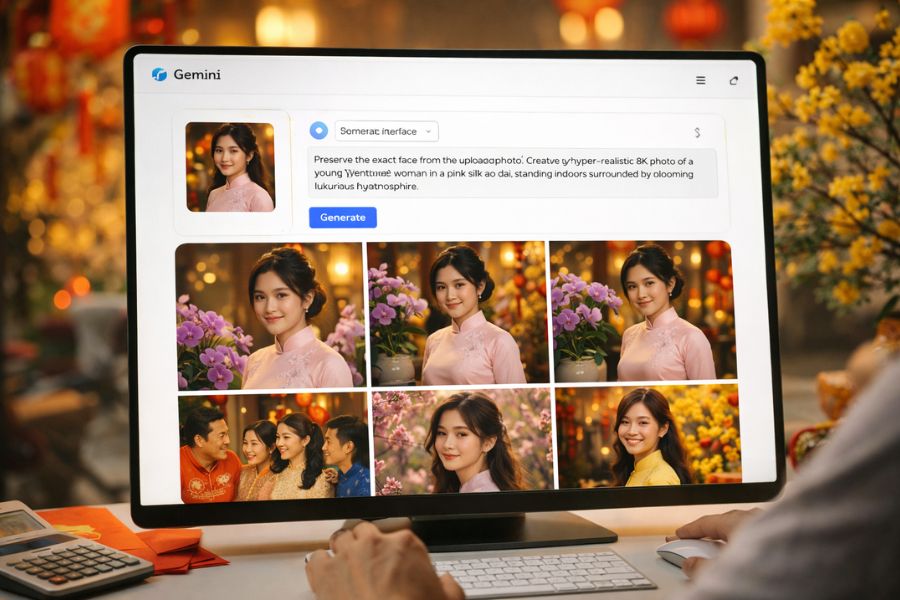 Trend tạo ảnh Tết bằng AI là xu hướng bùng nổ trong mùa Tết 2026 Bính Ngọ, nơi người dùng có thể tạo ra những bức ảnh rực rỡ mang đậm sắc xuân chỉ bằng vài thao tác đơn giản. Không cần studio chuyên nghiệp, ánh sáng đắt tiền hay kỹ năng chỉnh sửa ảnh phức tạp, công nghệ trí tuệ nhân tạo cho phép bạn biến một tấm chân dung bình thường thành bộ ảnh Tết lung linh như chụp từ ekip chuyên nghiệp. Nhờ khả năng hiểu ngữ cảnh, phong cách và các yêu cầu mô tả, AI sẽ tạo nên hình ảnh chân thật từ trang phục đến ánh sáng, giúp bạn sở hữu những khung hình chuẩn mực chỉ trong vài giây.