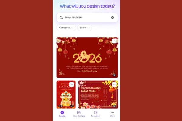 Canva là một trong những ứng dụng hiếm hoi mang đến trải nghiệm thiết kế đơn giản đến mức ai cũng có thể bắt đầu ngay lập tức. Chỉ cần mở ứng dụng trên điện thoại, bạn sẽ thấy mọi tính năng được bố trí rất rõ ràng và dễ tìm. Không cần kiến thức chuyên môn, không cần học qua bất kỳ khóa thiết kế phức tạp nào, người dùng chỉ cần chọn mẫu thiệp Tết có sẵn và tùy chỉnh theo ý muốn. Việc tạo thiệp vì thế trở thành một trải nghiệm nhẹ nhàng và thư giãn, thay vì khiến bạn cảm thấy căng thẳng với những công cụ khó nhớ khó dùng.