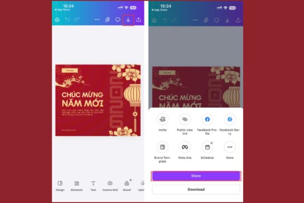 2. Cách tạo thiệp chúc Tết 2026 bằng điện thoại với ứng dụng Canva