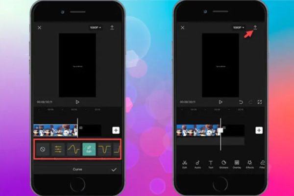 Ngoài ra, CapCut Mobile còn cung cấp tính năng Curve giúp tạo các hiệu ứng tốc độ động, mang lại cảm giác chuyên nghiệp và sáng tạo. Các tùy chọn như Montage, Hero, Bullet, Flash In hay Flash Out cho phép bạn tạo những đoạn video chuyển động nhịp nhàng, từ cảnh quay chậm đầy nghệ thuật đến những phân cảnh tăng tốc kịch tính, giúp video thêm sống động và hấp dẫn hơn.